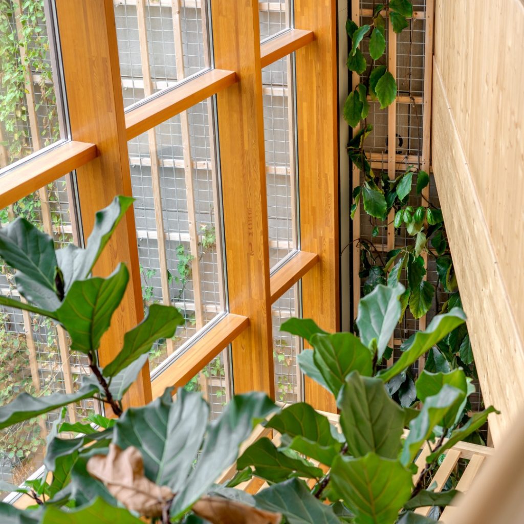 Je raadt het: neuroarchitectuur en biophilic design zijn nauw met elkaar verweven. De integratie van natuurlijke elementen vermindert stressgevoelens, verhoogt de productiviteit en creëert een ontspannen sfeer. Bruno: “Volgens de attention restoration theory zorgen natuurlijke omgevingen voor een zachte aandacht, waardoor de hersenen herstellen van de vermoeidheid die gepaard gaat met de harde aandacht voor taken. Het is voldoende om 40 seconden naar natuurlijke elementen te kijken om je cognitieve en mentale vaardigheden te resetten.”