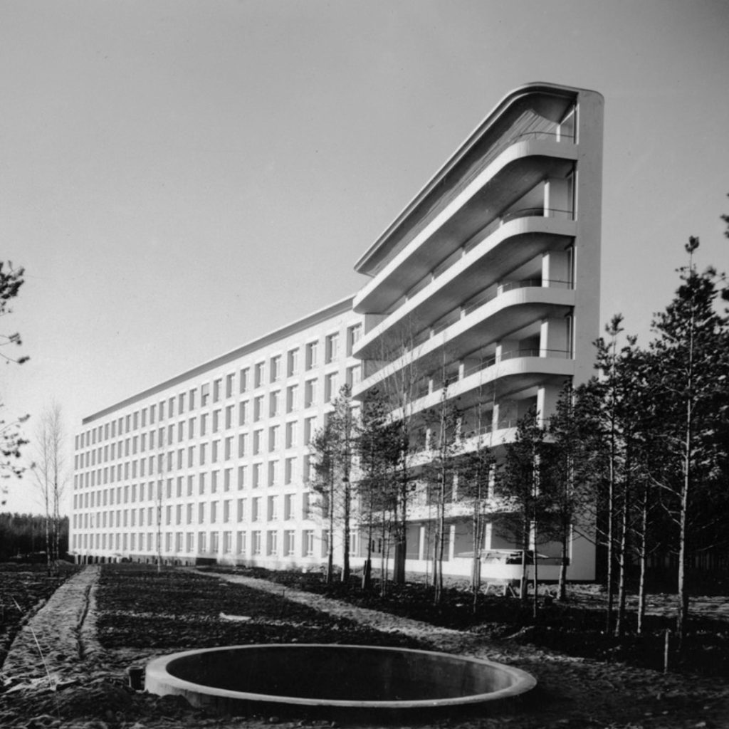Een mooi voorbeeld van salutogene architectuur is het voormalige sanatorium in de Finse gemeente Paimio. Kjell: “Dit gebouw van Alvar Aalto droeg actief bij aan het herstelproces van de patiënt. Zo was er speciale aandacht voor het ontwerp van de patiëntenkamers. Omdat de patiënten met tweeën een kamer deelden, ontwierp Aalto ‘stille wastafels’. Op die manier werden patiënten niet gestoord als hun kamergenoot zich waste. De kamers werden ook in zachte kleurtinten gestoken voor het kalmerende effect. Deze mensgerichte aanpak vind je in de kleinste details van het sanatorium. De patiënt, en bij de uitbreiding de mens, staat centraal in de aanpak van Aalto.”